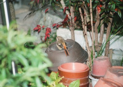 お寺さんの中庭にジョウビタキがやってきた。 あたりをキョロキョロ見まわしたりするしぐさに愛嬌があった。