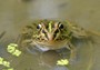 朝、近所の田んぼでトノサマガエルを見つけました。カメラを近づけても逃げません。眠たかったのかも? 撮影者:長井 裕司さん 撮影場所:千早赤阪村水分(2012.07.07) |