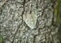 樹の幹に頭を下にしてとまっているのは蛾のシロシタバ。幹の木肌にとけ込んで、しかも動いていないのでその存在が判り難い。特に、翅の灰緑色の斑紋が周りの樹皮に付く地衣類とそっくりなのには驚かされる。 撮影者:横田 靖さん 撮影場所:池田市伏尾町(2013.08.08) |