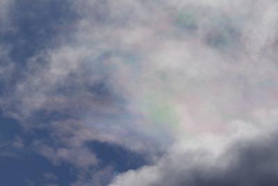 自治会の行事に孫たちが参加するのでカメラを持っていきました。小雪が時折舞うお天気でした。太陽が雲の間から顔を出したので見上げると、彩雲が見られました。