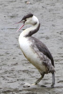 歩くカンムリカイツブリ