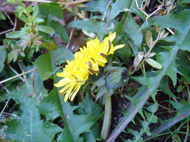 まわりにある多くの外来種の株がすでに綿毛になっていました (纐纈)。