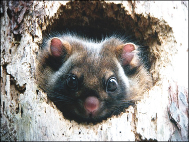 1月30日午後4時頃、鍋谷峠に向かう国道を車で運転中に、道沿いの枯れ松の巣穴から顔を出して外を見ているムササビを見つけました。 約30分ほど顔を出してお相手してくれました。 途中、粉雪が舞う寒い中での出会いでした。