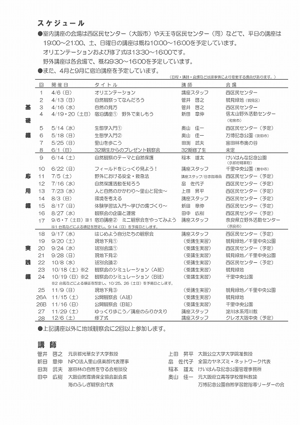 HOME » 講座・講習会 » 自然観察インストラクター養成講座 » 第33回自然観察インストラクター講座